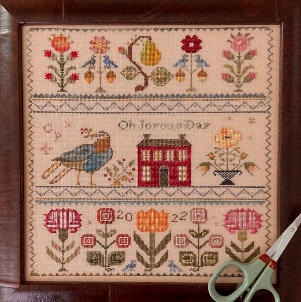 O Joyous Day by Blackbird Designs (this lovely model stitched on 56 count and converted to Tudor silks by our customer, Gail)